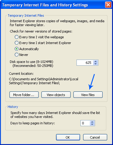 4. A new window titled "Temporary Internet Files" will show up. Search for cookies: ad.yieldmanager.com, content.yieldmanager.com, yieldmanager.com or yieldmanager.net and delete them. It's content.yieldmanager.com in our case.